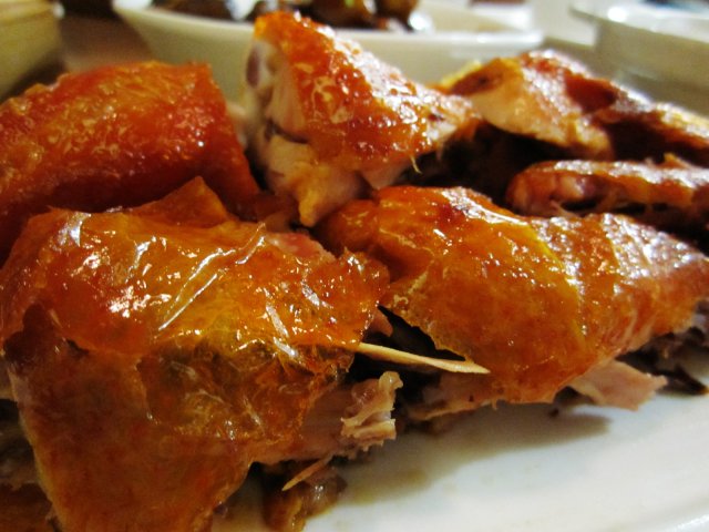 吊烧鸡,杨梅喜欢,皮脆,肉没味道,但是杨梅就喜欢没味道的肉,店家可以考虑搭配个什么蘸料。家人鄙视的说这个鸡菜场也能买到。