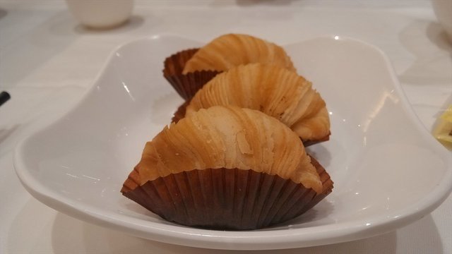 果然还是广受好评的还是点心类的,因为是冲榴莲酥来的,当然先说说这个。在经历了前两道让我很失望的菜后,榴莲千丝酥好吃,没让我失望,外皮很酥,也不会太油。馅料恰好,不会太甜太腻。不过性价比就很难满意咯。