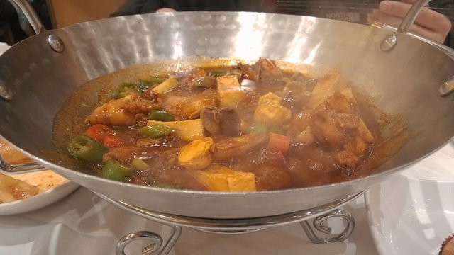 还有一道菜名字记不太清楚了,反正就类似是干锅鸡,可能因为口感太一般,也不会去点第二次了,所以也没把这道菜特别放到心上。鸡肉很小肉很少,虽然已经算是重口味的菜,但是味道还是偏甜,可能还是广东风味的缘故吧,不太合我胃口。