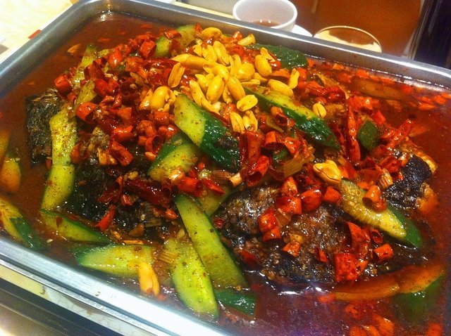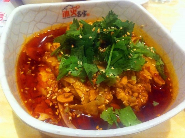 翻开菜单烤鱼有28种口味,真是选择非常多啊,不怕你想不到,就怕我们都想吃啊,选择困难症又出现了,还是选了推荐比较多的十三香,怪味和香辣,要的是清江鱼,十三香我没吃到几口被小伙伴抢光了,香辣味鱼肉很香嫩,辣的够爽,怪味麻辣酸甜,怪得够劲,配菜金针菇,魔芋丝,腐竹,土豆都很好吃,这里的烤鱼不是温控沸煮的,而是保温的,鱼肉口感也比较嫩,和配菜一起蘸着汤汁吃更入味,味道还是很不错的,下次去再试试其他口味的~