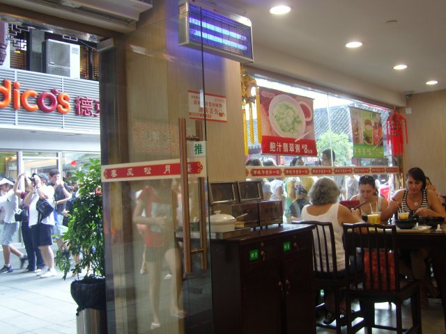 虽然春风松月楼不在城隍庙中心,但是架不住景区里的人流如织,一楼的餐厅里,在我们坐在里面的半个多小时里,一直是络绎不绝,而且来吃饭的外国人也很多。看着那些老外拿着筷子一本正经的吃面条,很有意思,突然觉得人家外国人都能这么认真吃我们的面条,我怎么能这么浪费呢,于是乎我又多吃了两口。