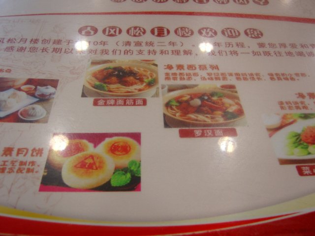 这家春风松月楼,始创于公元1910年,距今已经有百年的历史了,是真正的老字号饭店了。饭店的一楼,仍旧是传统的小吃店堂的格局,进门右侧的小小的收银台上方的墙壁上,是各种小吃的价目表,客人在收银台选好要吃的食物,买单拿票,然后在店堂后部的厨房等食物被做好。