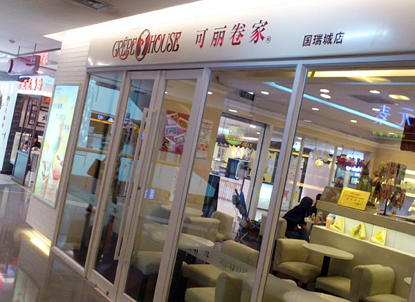 这家店就在国瑞城地下一层,还没吃过可丽卷家的东西,于是周末来的时候就顺便尝尝。他家的可丽卷分很多品种,因为我们一家吃过饭了,于是买了冰淇淋的,25一个呢,不算便宜,推荐巧克力香蕉的,冰淇淋挺浓的,跟香蕉一起吃,味道不错。芒果草莓的我觉得稍微甜了点,但儿子喜欢吃,估计小孩子都喜欢吃甜一些的口味。下次来这里吃午饭,可以尝尝香肠和金枪鱼的可丽卷。这家环境还是不错的,白色调装修,看着挺透亮简洁。