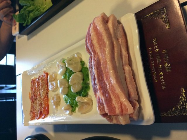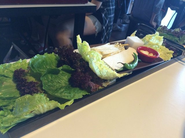 套餐里的内容也很简单,4块肉,一点菇,还有个什么菜。200多块。他们家的serivce超级好,服务生都是随叫随到。都是站着帮你烤的。他们把食物剪开后,你会发现虽然只有一点点的肉,但是切成小块,包在生菜里其实量还不少。至少2个女孩子还觉得吃不下(海鲜锅的作用吗?) 肉质相当好。肥瘦相间。不油腻。