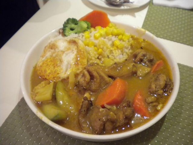 萌萌点了咖喱鸡饭~36米,半价后18米。分量颇大,