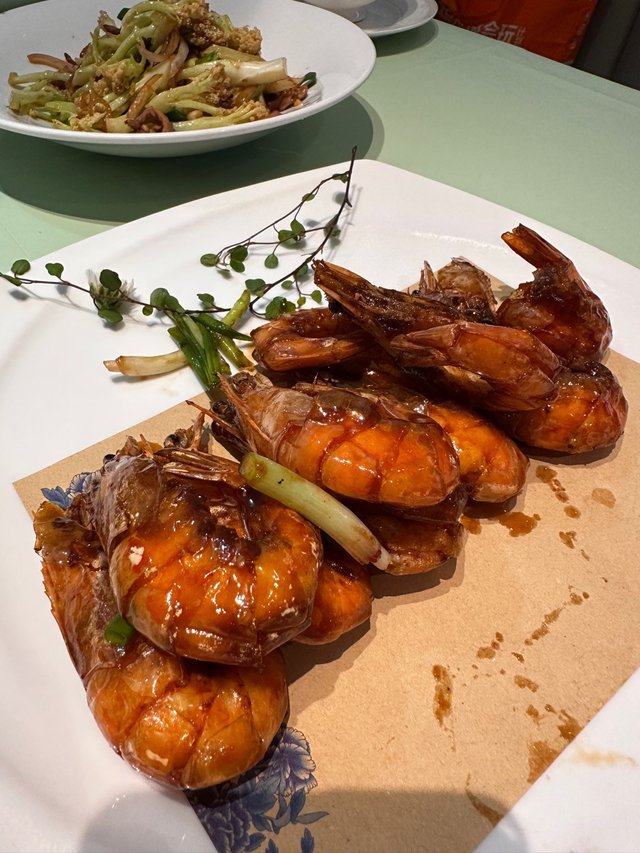 豉油蝦用手剥殼居然一大盤都是黏着蝦殼的
