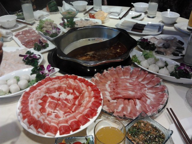 牛羊肉量也都蛮大的,摆盘很漂亮,肥瘦相间,肉片很薄,下锅即熟,肉很紧致,劲道,肉香浓郁,吃火锅必不可少。鱼丸颜色奶白,吃着很是鲜美,Q弹爽口。豆腐软嫩清香,鸭血很滑嫩,还有娃娃菜等青菜,看着很新鲜,味道清新香甜,都很好吃。