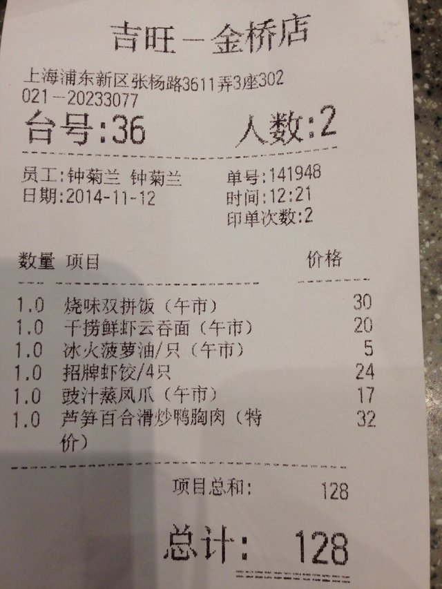 估计是工作日午市的关系,两个人结账才128,性价比挺高的。
