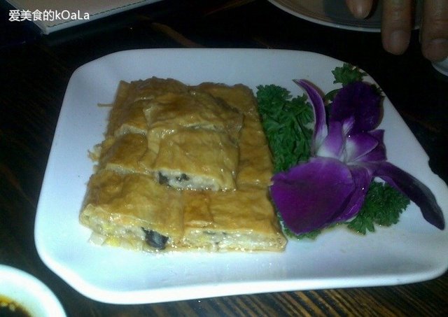豆腐衣包金针菇,做的不是油,是偏湿,为什么是说不上来,不过味道不难吃,算是那顿中饭里比较好吃得一道菜了,这道菜我推荐去枣子树,他们家的更好吃~