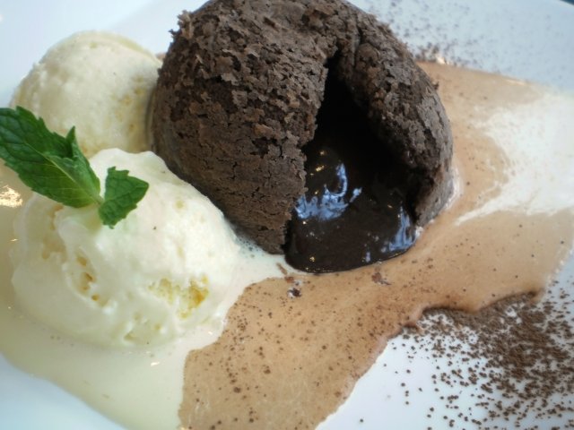 (巧克力熔岩布丁)强烈推荐,真心好吃,吃过这我才感觉朋友说的最好吃的下午茶的含义了,神马夏朵的熔岩都是浮云。挖开下,整个巧克力都流了出来。