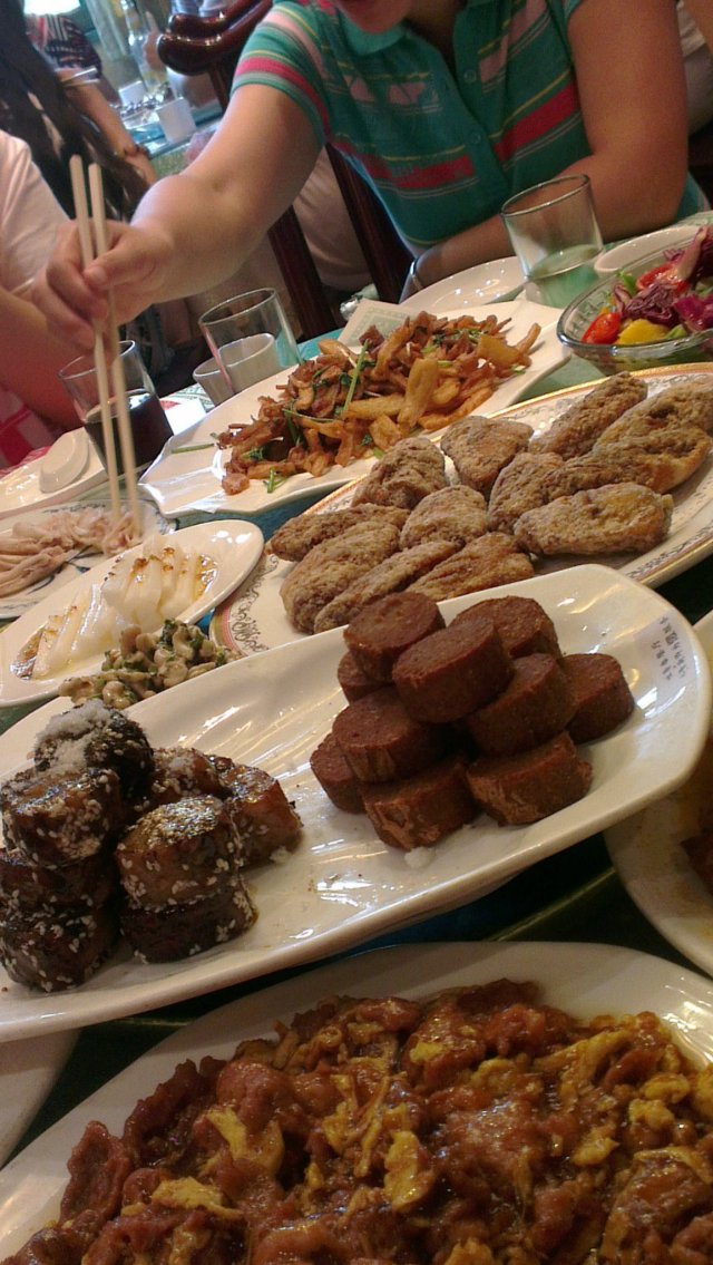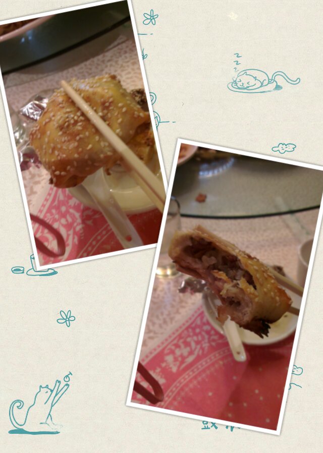 炸糖卷果,左边是甜的,里面貌似是土豆和肉,右边是咸的,个人感觉一般