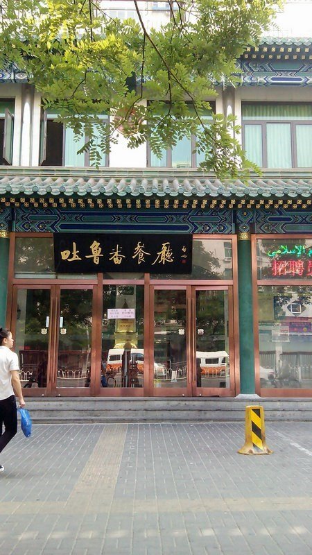 地址在西城区牛街6号,这条街都是清真街道,所以会引来大批食客,就是来吃这个正宗的味道。这里停车不是很方便,车位少,而且街道也不宽,容易堵车。店里的环境是不错,还总是有人在这里办婚宴呢。来吃的话必点的就是羊肉串啊,虽说12一串,是真心贵,好在串大,铁签子串的,四块大大的肉,瘦瘦肥瘦的组合,很是正宗,上面的孜然粉磨得很细,辣椒粉也是那种传统的细细的辣椒面。大盘鸡和炒面片真心是好吃,小分的大盘鸡只要40元,鸡肉有个十几块的样子,可是我偏偏是喜欢吃大盘鸡里的面条,很宽,比较厚,吸饱了汤汁,味道这个鲜香。炒面片也是很大一盘,番茄放的很多,面片薄厚适中,还有长长的豇豆,吃着特别过瘾。两个人的消费也不高。就是等位比较烦。