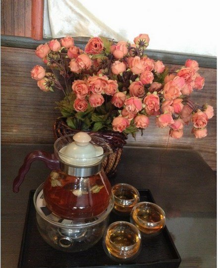 点了一壶玫瑰茶,刚开始喝觉得有点淡,喝到最后就不淡了有点味道了,估计还没泡开。味道不错。