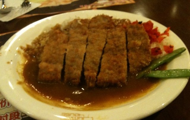 很喜欢吃咖喱,所以这家店一直光顾的,店开在家乐福一楼,店面还算可以,双休日饭点的时候人还是蛮多的。最喜欢咖喱猪扒饭了,每次去必点,猪扒很大一块,猪扒烤的脆脆的,咖喱是黄咖喱,不是那种很辣的,浓郁的咖喱拌饭最好吃了,饭上的酱菜也喜欢啊,很下饭。宝宝最喜欢里面的儿童套餐了,虽然我感觉宝宝是喜欢套餐的容器罢了,儿童套餐每个都是用一个可爱的造型的容器装的饭,有车有飞机等等,里面有一点点的米饭,饭上有芝麻,很香,还有小香肠,布丁等等,香肠的味道很不错,很有嚼劲,宝宝很喜欢。