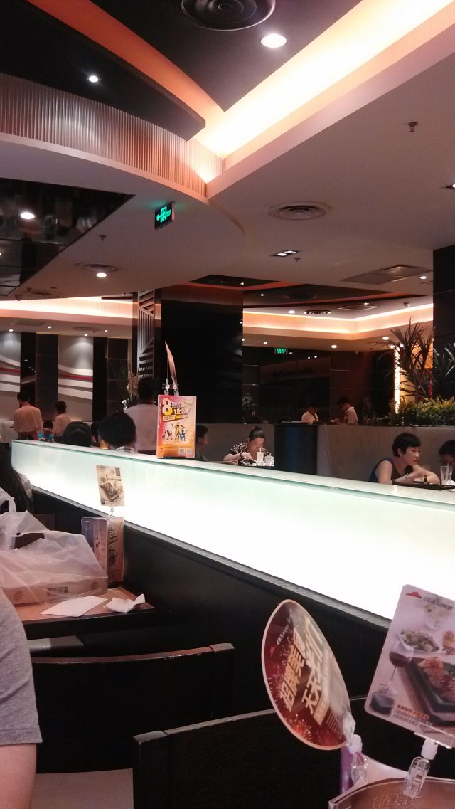 因为离公司上班很近,晚上下了班,跟男朋友两个人就去了这里吃晚餐,看门口的宣传页,刚好有活动,每天都有一款半价披萨,那天半价的是黑椒排披萨,我喜欢的口味~不过,等位的人好多啊,分小桌,中卓和大桌,两个人就让我们等的小桌,话说小桌真心慢啊,后面来的中卓都上去了,我们的还没有,后来无奈又要了个中卓的号,排了半个小时才有位,点了一份大装的披萨,两杯珍珠奶茶,服务员说差不多要等40分钟才能上,那就等吧,等到半个小时的时候,又告诉我们说大装的没有了,给我们两个普通装的行不行,肯定可以了,哈哈,你懂得~~两个人真心吃不完啊,后来打包回来第二天当早餐~~