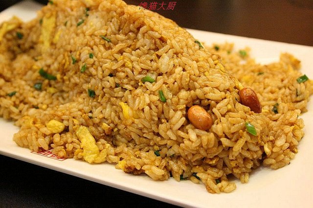 葱花酱油炒饭:摆盘很是花心思,摆成了一条鱼的形状,拿花生米镶上眼睛,立即活灵活现起来