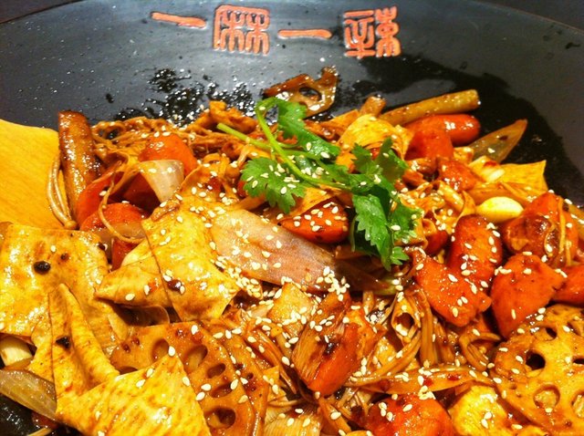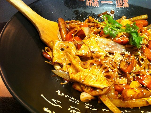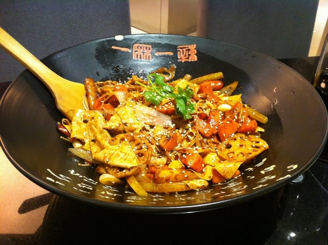 因为我和朋友都不太能吃辣,就选了微微辣,选了最喜欢的鸡胸肉、虾丸、热狗肠、牛蛙,配菜选了金针菇、油豆皮、青笋、土豆条、藕片,好了选好菜品就可以喝着酸梅汤聊聊天等着了,没有多久,新鲜炒制的麻辣香锅就飘着香气的被端出来啦,两碗米饭也跟我们俩一样迫不及待了,开动!麻辣始终的香锅兼职太下饭啦!另外,他家的炸馒头片相当好吃啊,蘸着炼乳每次都点一份。不能吃的小伙伴可以选择酱香口味的哦!