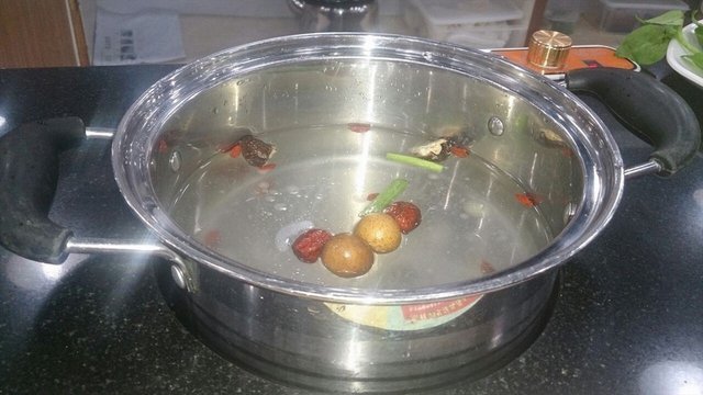 他家的锅底是2元,我要的是清汤的,里面有桂圆、大枣、香菇、枸杞,没有什么味道,水应该就是白开水。