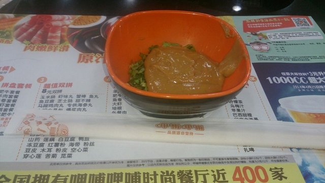 麻酱小料是3元,可以免费无限吃,最爱的就是这个小料,麻酱味道特别的浓,很粘稠,蘸着柔和蔬菜都好吃。