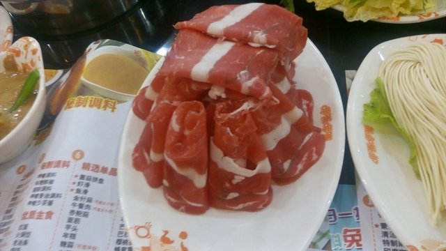 还要了盘肥牛,切片很细,但是肥瘦得当,煮出来之后肉很紧致,吃起来很有嚼劲,可以感觉吃肉质不错新鲜。