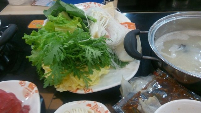 一般吃的话都会选一个套餐,里面包含了很多喜欢吃的菜,价格实惠,要的菌汤,上来后看汤的颜色就觉得很有营养,品尝之后感觉很鲜,调料的话一般都选择麻酱配味增,咸中带甜,甜中带鲜,而且调料都是可以无限次数要的,在配上香菜很香