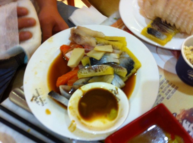 三文鱼在取得时候就剩下可怜的4片,应另一位顾客要求再上点儿,我才沾光盛了点儿