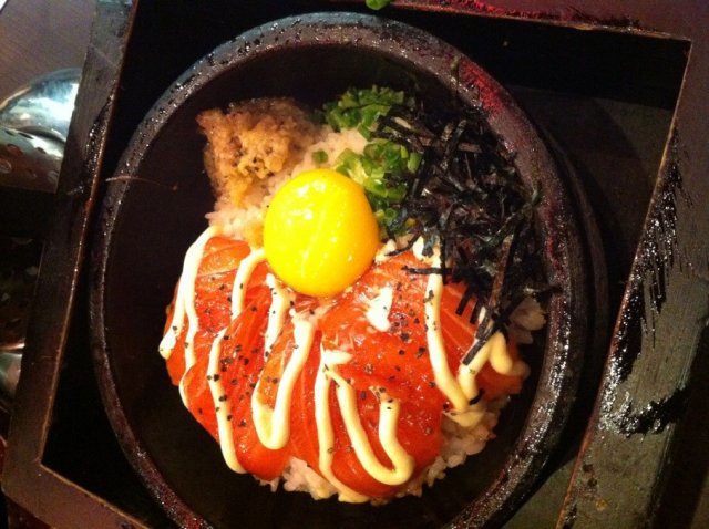 【三文鱼石锅饭】:这款石锅饭非常的又味道,米饭吸收了汤汁的鲜美,和三文鱼的精华,结合在一起,创造出美好的味道来刺激我们的舌尖,酸酸甜甜的味道,非常的开胃,入口后非常的满足,达到了顶层的境界!赞~·