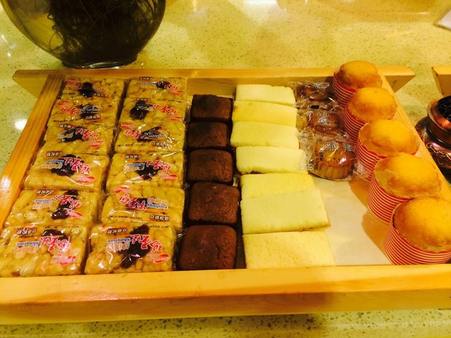 小吃有:南瓜饼、小紫薯、蒸饺、蒸蛋、紫薯球、炸香蕉、糯米糍等,都还不错,蒸饺拿来煎了超级好吃。