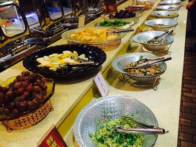 菜品种类比较丰富,门口就是特色菜的制作区,有:火焰铁板类、现烤扇贝、生蚝等。当晚就拿了两个扇贝,可能是时间原因吧,后来就没烤了,扇贝蒜放太多,一般。火焰铁板比较嫩,蛮好吃,就是给的分量太少。