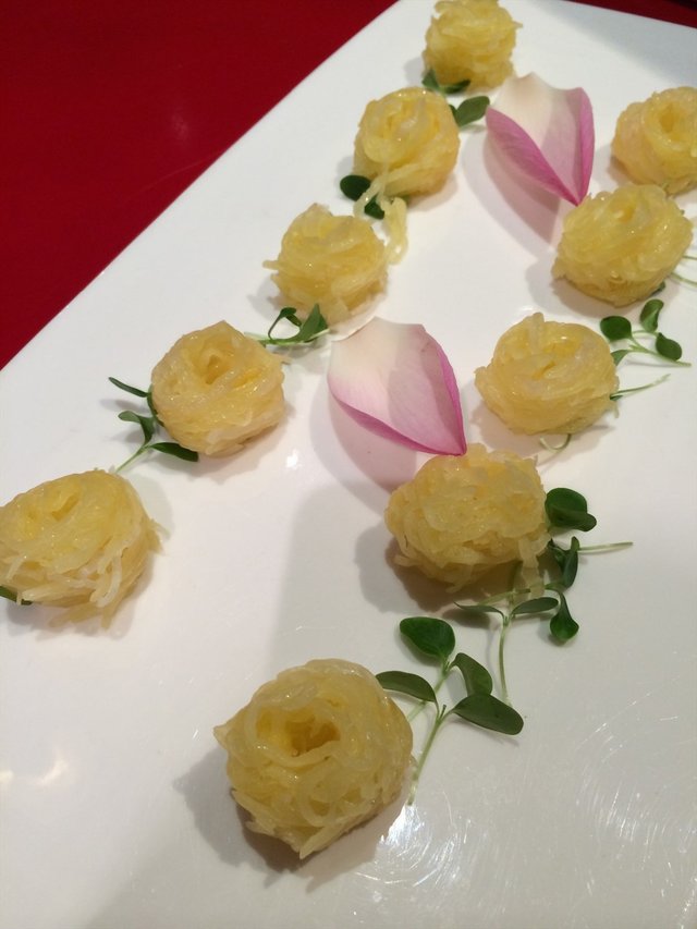 【酥香龙珠】卖相绝对的100分!只是,腐皮细丝略显油腻,虾肉、鸡枞菌、猪颈肉构成的内馅不够鲜香,既没有虾肉的鲜甜,又尝不出猪颈肉的脆韧
