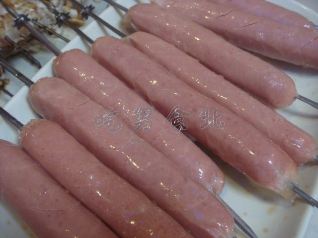 香肠10串,每串3元,共30元,这个香肠没什么肉感觉,淀粉太多了,不过,淀粉多的没有瘦肉精,哈哈。