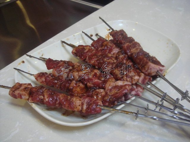 牛板筋小10串,每串3元,共30元,这个稍微那么一烤就能吃,别烤老了各位!