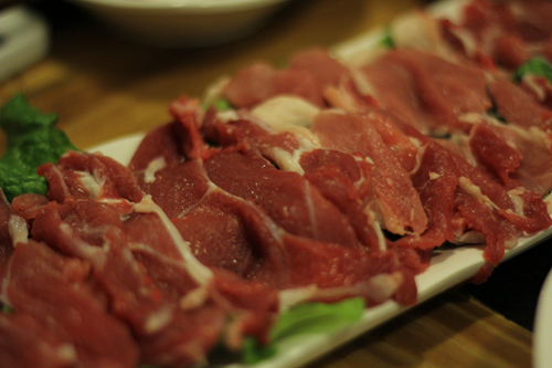 手切羊肉和麻辣牛肉:“嫩”就是这两种食材的共同特点,选料非常的精准,牛羊里脊最嫩的部分,最好不要冻,羊切成三棱的滚到条,牛切成0.5左右的大片。放到锅里面一定要然他们动起来,这样受热均匀你,锅底的汤与食材的每个部分均匀的接触,更加好成熟。