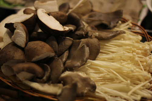 菌类拼盘:就是杏鲍菇片、香菇、平菇、金针菇。