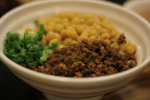 吃老油火锅的第二大特色是小料。香油蒜泥味碟、干料味碟和原汤味碟是传统的,麻酱味碟是为了适合北京人的饮食习惯衍生来的。说的讲究一点,三个味碟对这部不同的涮品,但是不可能每个人都要那么多的味碟,推荐大家用比较万能的原汤味碟。原汤味碟有蒜泥、油酥黄豆、香葱,加上烧开的老油锅底。吃原汤味碟一定要把涮好的食物全部放到小料里面,由下至上捞起,这样味碟吸收了食物的热量才不会凝固,影响食物的味道,吃的时候也不会烫。