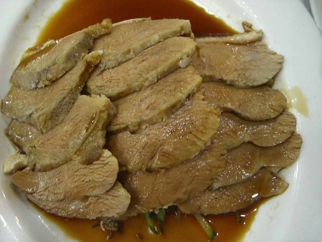 提前交代免辣。切工不错,薄厚均匀,选的也都是纯瘦肉部分,就是浇的蘸汁稍微有些口重。