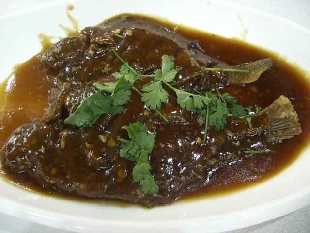 最后出场的,卖相一般,看着黑乎乎的,用的是黄尾蝶鱼,刺不多,芡汁浓稠包裹在鱼身上,倒是每一口都有味了。如果套餐是松鼠鳜鱼就好了,吼吼!