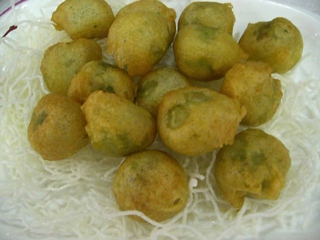 卖相不错,金黄金黄的小丸子,外皮酥酥的,里面是韭菜馅,趁热吃很香!