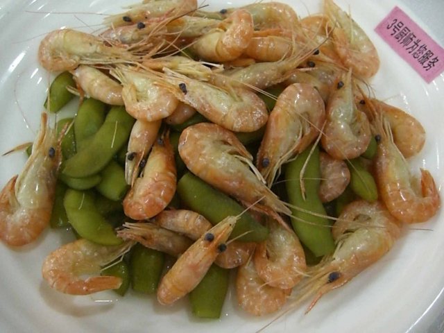 白灼的,整体比较清淡,毛豆新鲜,鼓鼓滴,河虾头会扎嘴,吃的时候要小心