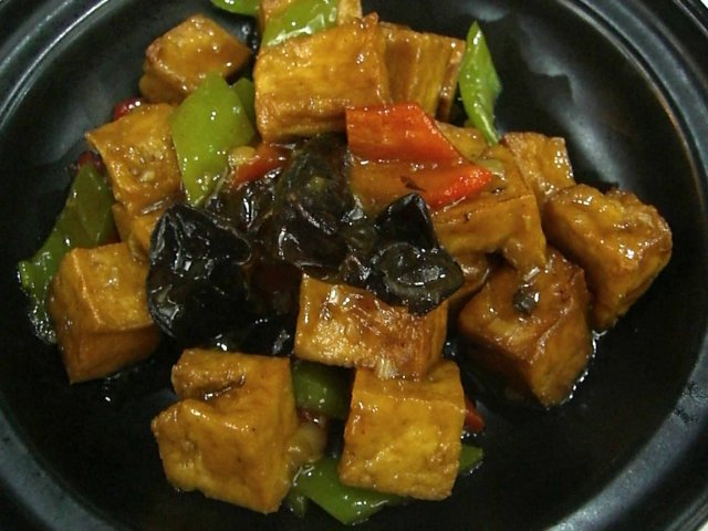 豆腐、青椒、木耳炒过的,味道不错,适合下饭