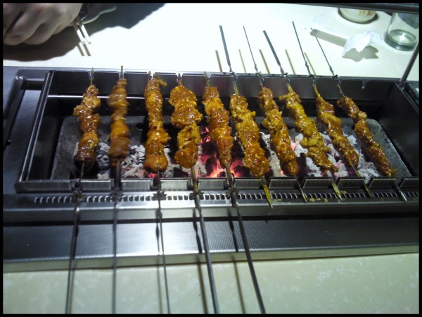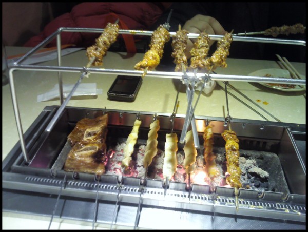 这边的火很旺哦 各式各样的烤串自动翻动着 很喜欢这样的炉子哦