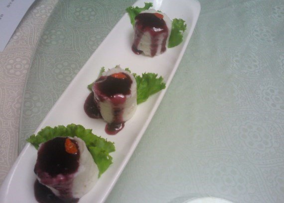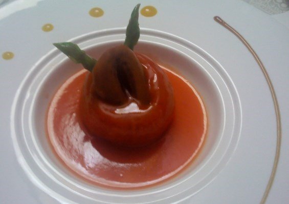这道菜比较有意境,西红柿、芦笋搭配鲍鱼,刚上来,从视觉上确实吸引眼球,不过这种做法鲍鱼咬起来挺费劲的,可能老板要的就是这种口感吧,
