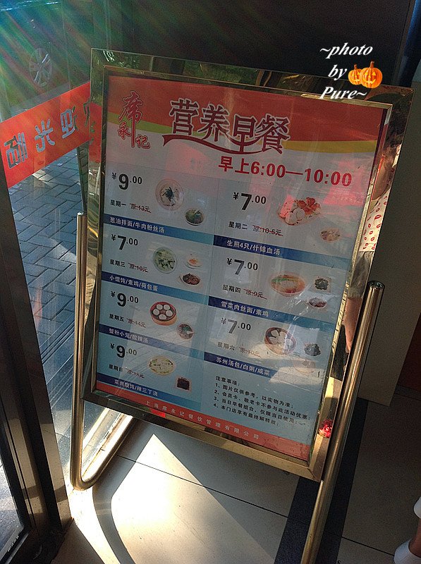 看到他们家旁边还有早餐优惠的牌子。每周每天都是不一样的搭配。价格比单点要便宜一些。如果是周围的居民倒是可以一直来吃。价格在7到9元。我看周四早上是雪菜肉丝面加素鸡。7元。很实惠啊。供应时间是早上6点到10点。很想哪天早起去试试看!喜欢
