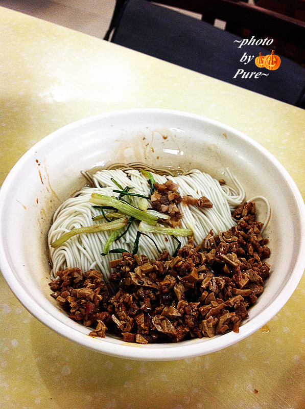 【上海肉酱拌面】10元 这个也不错啊。其实和辣肉面很类似,就是一个是汤面,一个是拌面。拌面做的很地道。关键是他们家的面条很棒。依然是这种劲道的面条来拌的。自然是招牌推荐。比外面的拌面都好吃!
