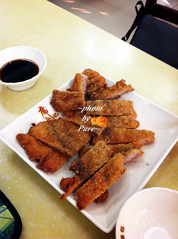 【油炸猪排】15元。这个就是上过电视n次的招牌炸猪排了。非常大啊。一块炸猪排上来实在是吓死人。2个女生一起吃才能解决的。炸猪排是裹着面包粉炸的。切开后,吃在嘴里肉很紧实。不过有明显的面包粉颗粒感。不算是最好吃的那种。我吃到最喜欢的炸猪排是富民路上面的“美味点心店”里的炸猪排。席家的其实只是靠外形硕大来吸引人而已。真正的味道方便还是很普通。