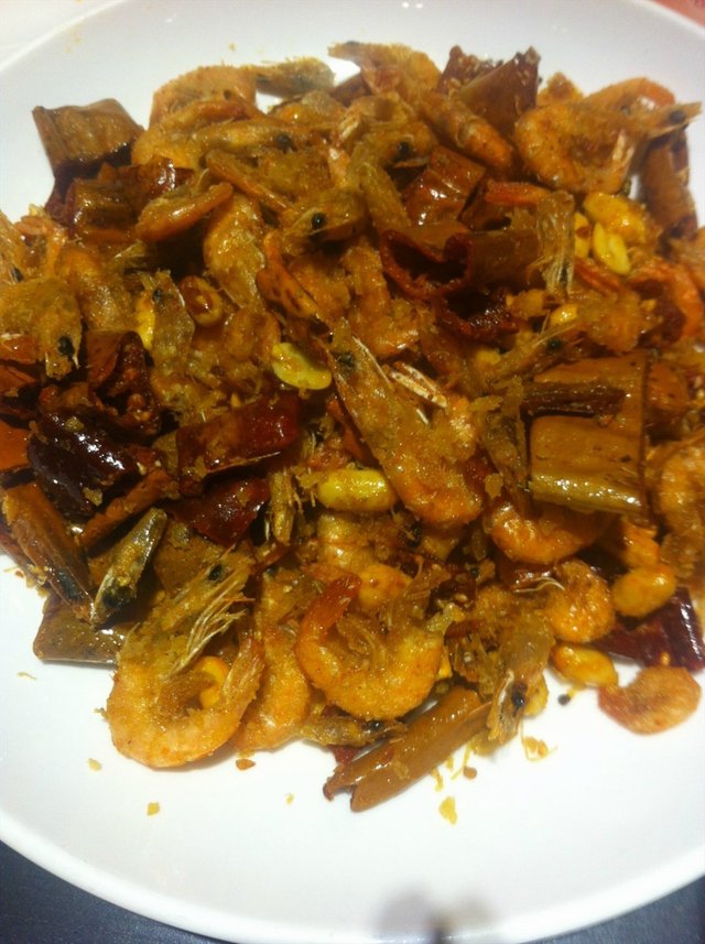首先推荐的是水煮鱼,很大一锅,草鱼,上来时候热气腾腾,油汤滋啦啦的翻滚在大碗里,上面漂浮着密密麻麻的辣椒。鱼肉口感还可以,很嫩滑,但就是刺有些多。服务员也不会主动提供吸油的面包片,真的会令整体减分。