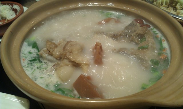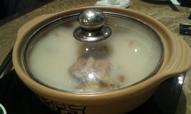 莲藕骨头汤,小份48米。同样又点的莲藕锅,藕块很大很绵软。还有红枣、枸杞等食材在汤里面,营养还是蛮丰富的说,锅开之后可以加葱花进去提香~白色的汤汁味道很浓郁,满是肉骨头的鲜香哈~骨头上的肉肉也可以吃,炖的已经很软烂了,用勺子挖一下就可以美美滴享用了~冬天这道菜肯定受欢迎,基本人手一锅的节奏~