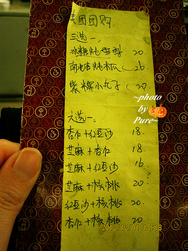 美团上面团购的甜品套餐。这家店已经口碑在外,离我家也很近,赶快团一张去扫店