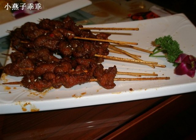 串烤黄牛肉:一份10串,貌似28元,个头不算大,但是口感很嫩,这个价钱也不算贵,蛮好吃的,不过如果可以配点辣椒粉孜然粉什么的自己加就好了,很不错。必点!