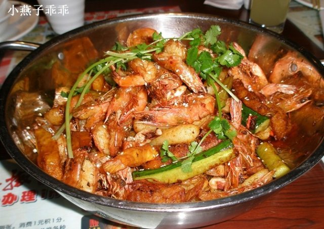 鱿鱼香辣虾:单点的话98元一锅,说是大锅也不觉得很大啊!不过吃到后面觉得量还是蛮多,基围虾去泥筋,里面还有少量的鱿鱼,配料是黄瓜,地瓜,年糕,但没有吃到介绍的仙姑豆腐,不知道是漏了还是什么,要了微微辣,口感不错的,尤其是配菜很入味。喜欢啊!下次可以试试微辣。应该会更好吃,爸爸不喜欢吃辣,所以只能要微微辣啦!几乎是没有辣味道的!